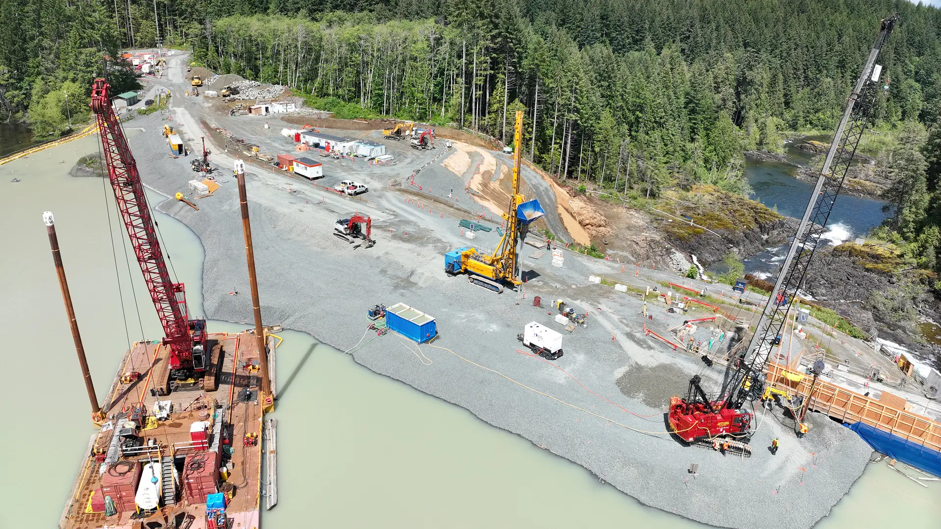 Campbell River, Canada – On the picturesque eastern coast of Vancouver Island lies the city of Campbell River, known as the “Salmon Capital of the World” and home to a vibrant ecosystem. Here, the government-owned BC Hydro is currently working on an important project: The seismic upgrading of the John Hart Dam – sustainable, safe and vital in equal measure. This is because the dam passes water to generate power at the John Hart Powerhouse, provides flood risk management operations, and the John Hart Reservoir provides the City of Campbell River with drinking water. BAUER Foundations Canada Inc., a subsidiary of BAUER Spezialtiefbau GmbH, was tasked with executing a new water seepage barrier within the main earthfill section of the dam.