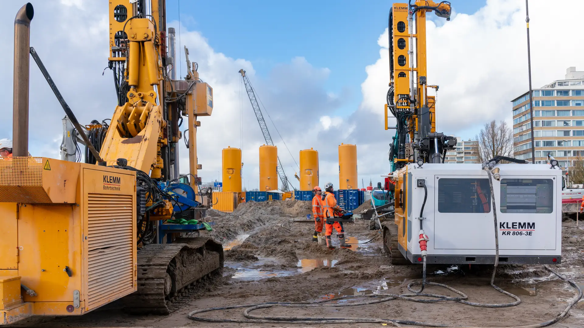 One special highlight in this project: For the first time, the newly developed electric KR 806-3E drilling rig from KLEMM Bohrtechnik GmbH is being used alongside a conventional drilling rig. This innovative new development is equipped with a battery and a grid connection. “We have already completed a full working cycle including drilling and expansion entirely using the battery’s energy reserves,” continues Maarten Daalmeijer. “Unloading, driving and transfer operations have also been carried out autonomously.” Another bonus point: The new equipment runs extremely quietly. “Another crucial step has been taken in the area of electric drives for construction equipment.”