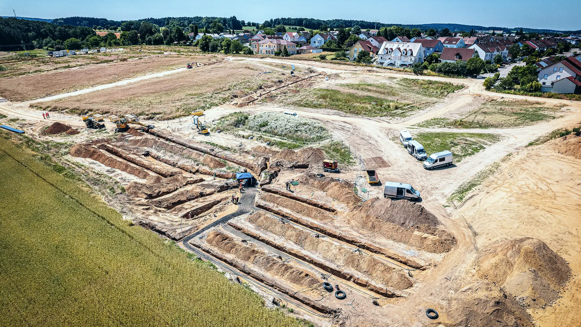 Schrobenhausen, Germany – What is the one of the most important aspects of future-oriented development areas? It's quite clear: heat supply. And the new “Kellerbergbreite” housing development in Schrobenhausen is a prime example of this. Especially when it comes to sustainability. On behalf of the company Bürger-Energie-Genossenschaft Neuburg-Schrobenhausen-Aichach-Eichstätt eG, Bauer Resources collaborated with the local city administration and public utilities to construct a geothermal probe system and cold district heating network over an area of 5.5 ha for a total of 64 residential buildings and a kindergarten – drawing on all the company’s expertise in the process. “This flagship project clearly demonstrates our hand in hand, holistic approach to working with geothermal heat. And this is truly our greatest strength,” says Marcel Moesslang, Operations Manager at BAUER Resources GmbH.