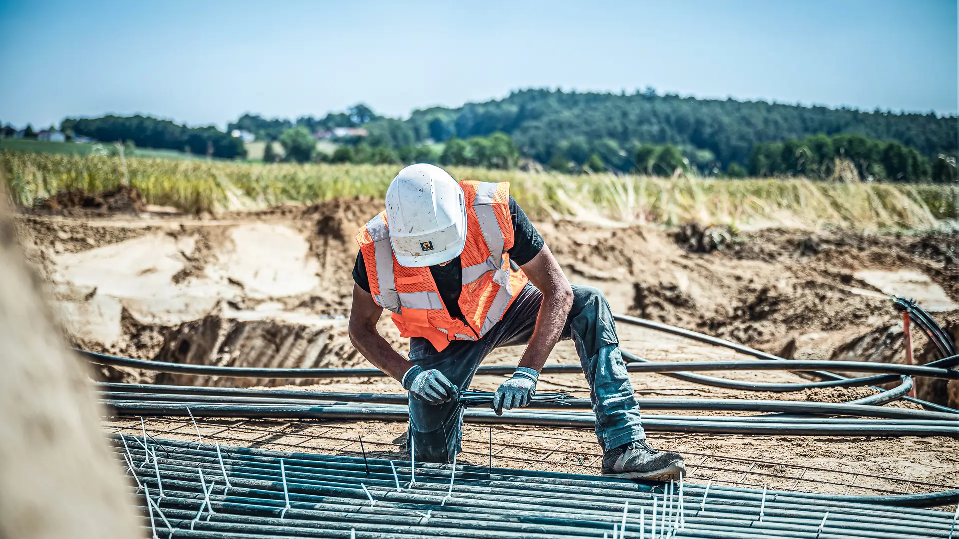 Starting in March 2023, a total of three drilling teams worked simultaneously on site to install the three geothermal probe fields. Step by step, they drilled one hole after another – some of which reached down to a depth of 60 m. In the next stage, 119 geothermal probes were inserted into the boreholes and grouted with a backfill material that enables efficient exchange of heat with the subsoil. One of the biggest challenges here, according to equipment operator Stefan Baciu, were the tough weather conditions: “Continuous rain made our work considerably more difficult. As an equipment operator, you have to be persistent. After all, the equipment has to be operated manually, that is, via remote control – regardless of the weather. And that’s not nearly as comfortable as sitting in an operator’s cab.” But the work has paid off: in the end, the geothermal probe fields will generate lots of green energy.